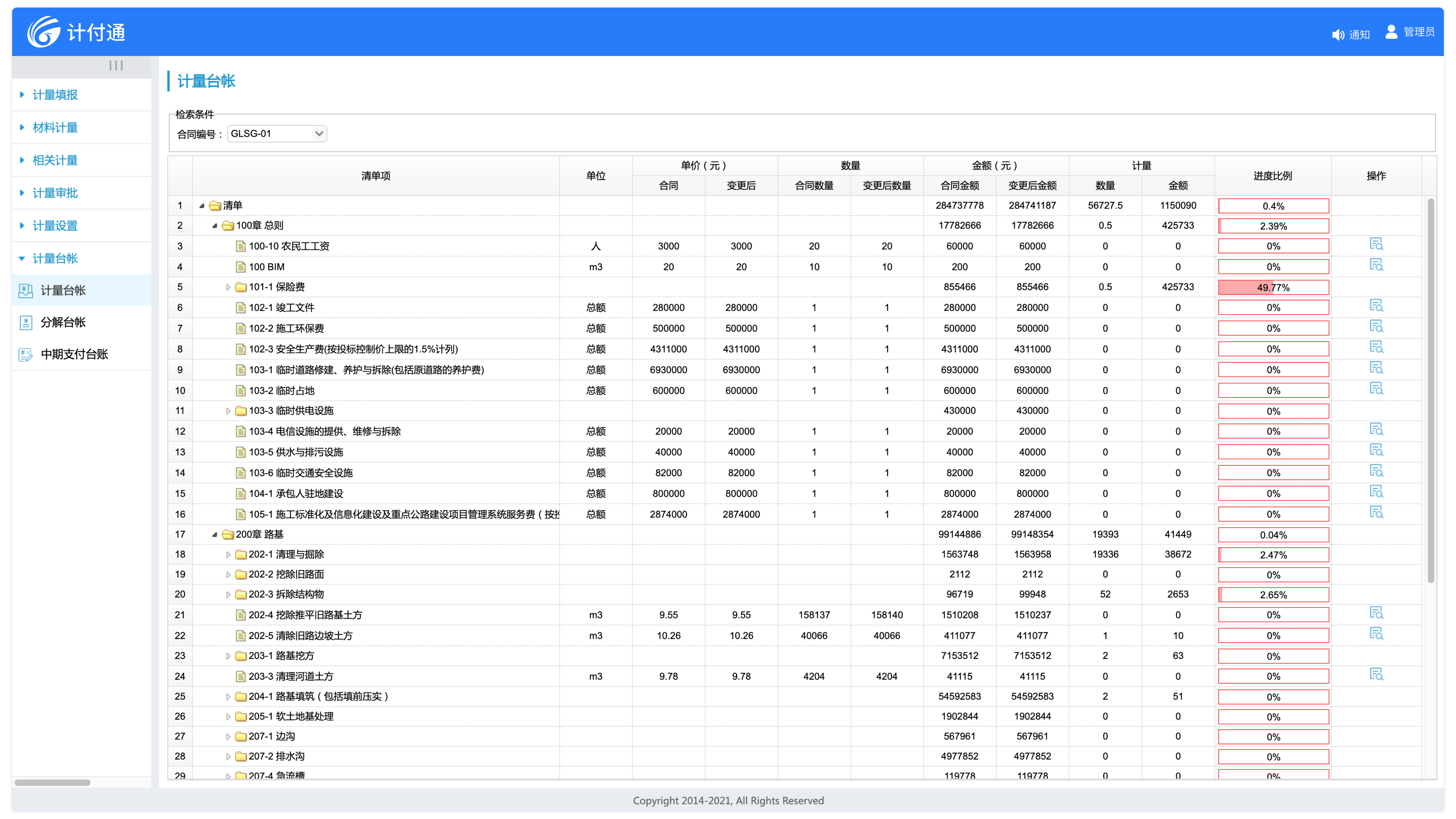 適應(yīng)多種計(jì)量模式,既支持按照合同清單總量進(jìn)行計(jì)量,又能按照工程部位進(jìn)行計(jì)量。