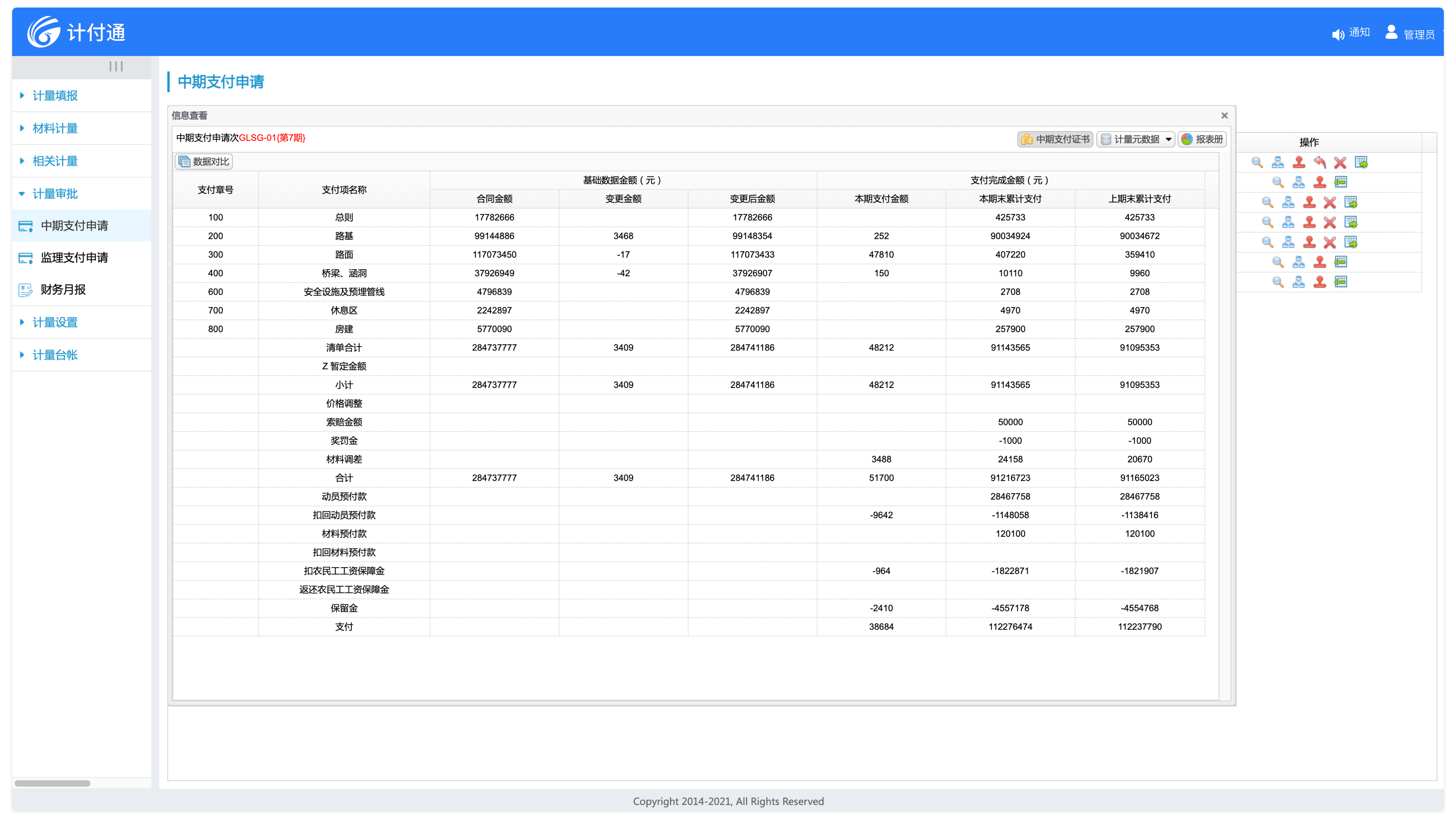 公司自主研發(fā)的計(jì)付通軟件是依托“ 精細(xì)管理、投資高效”的理念,打造的業(yè)內(nèi)領(lǐng)先的計(jì)量支付管理系統(tǒng)。系統(tǒng)以“精細(xì)化、協(xié)同